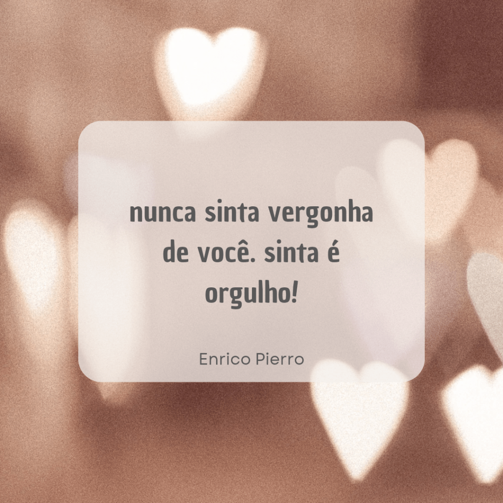 pra aprender a se amar, são passos simples: primeiro vc precisa reconhecer e aceitar tuas qualidades. depois entender os teus defeitos e tentar sempre melhorá-los. e o mais importante é aceitar quem vc é, e aceitar todas as tuas imperfeições, cicatrizes e marcas. porque elas contam uma história. a história de como vc chegou até aqui. nunca sinta vergonha de você. sinta é orgulho!