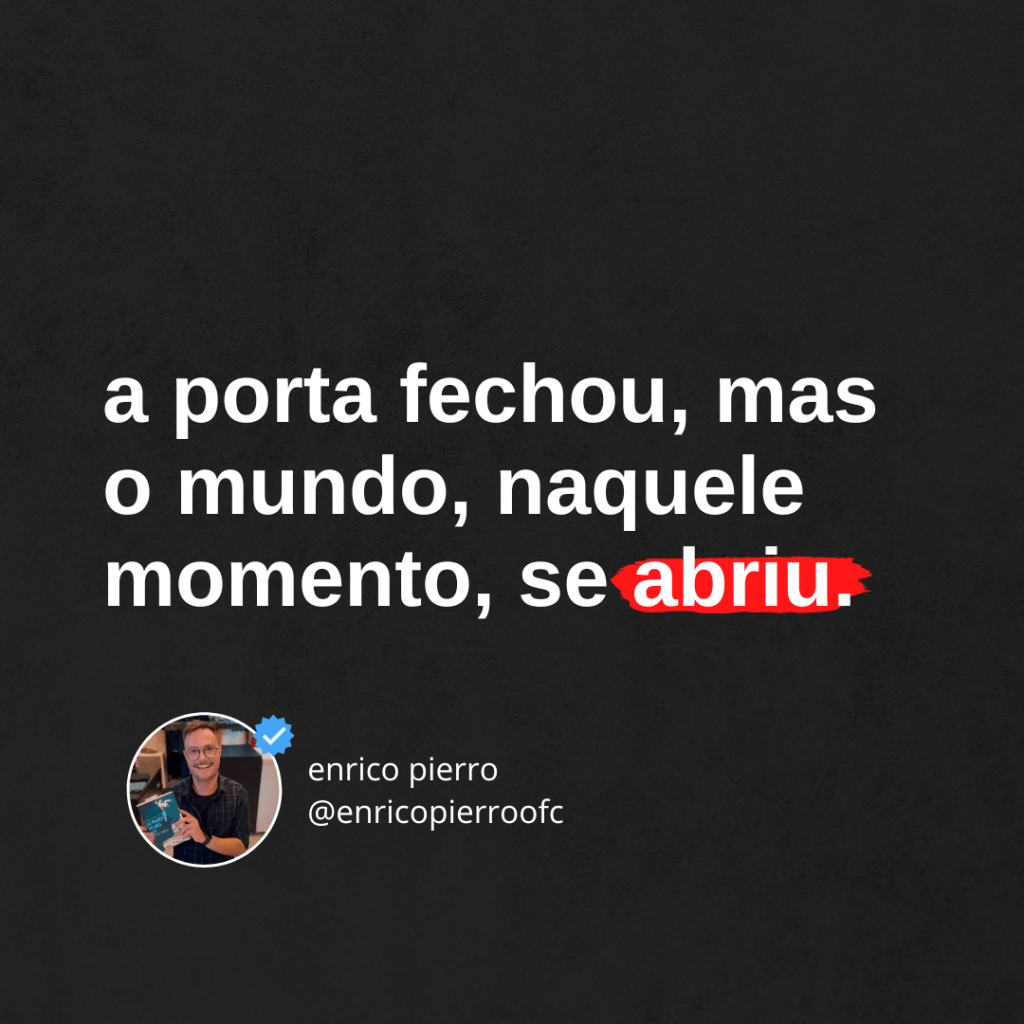 fechou a porta. não bateu, nem usou a força. simplesmente a fechou, com calma, sem barulho. ainda que ele achasse que aquela porta, na verdade, tinha muitos significados na vida, aquele era um primeiro passo. fechar uma porta significava, entre tantas coisas, encerrar um ciclo. viciante e cíclico. ele se sentia preso em ações, sentimentos e situações que ficavam se repetindo sem parar na sua vida.