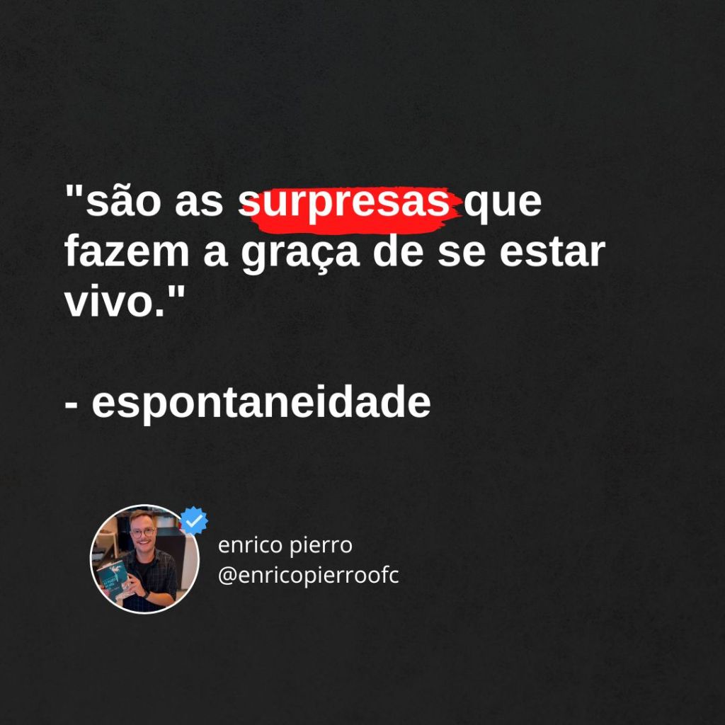 a espontaneidade é o que torna nosso caminho divertido. imagina se tudo na vida fosse com hora marcada? fosse ensaiado ou cronometrado? eu morreria de tédio. que eu seja espontâneo no que eu falo e penso. que a vida transcorra leve. que eu saiba aproveitar todos os momentos que cruzarem meu caminho e como diz florbela espanca: que me saiba perder… pra me encontrar…