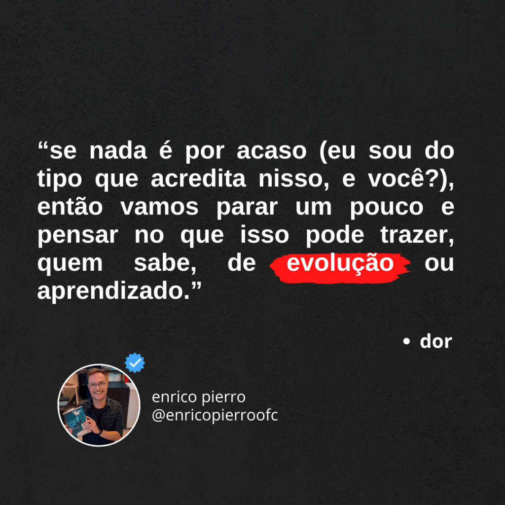 entendeu o ponto? não devemos nos conformar nem aceitar a dor como algo normal, mas se ela for simplesmente inevitável, que você saiba extrair algo de bom dessa “experiência” (é difícil achar adjetivos pra esse tipo de situação, viu? nada encaixa direito).