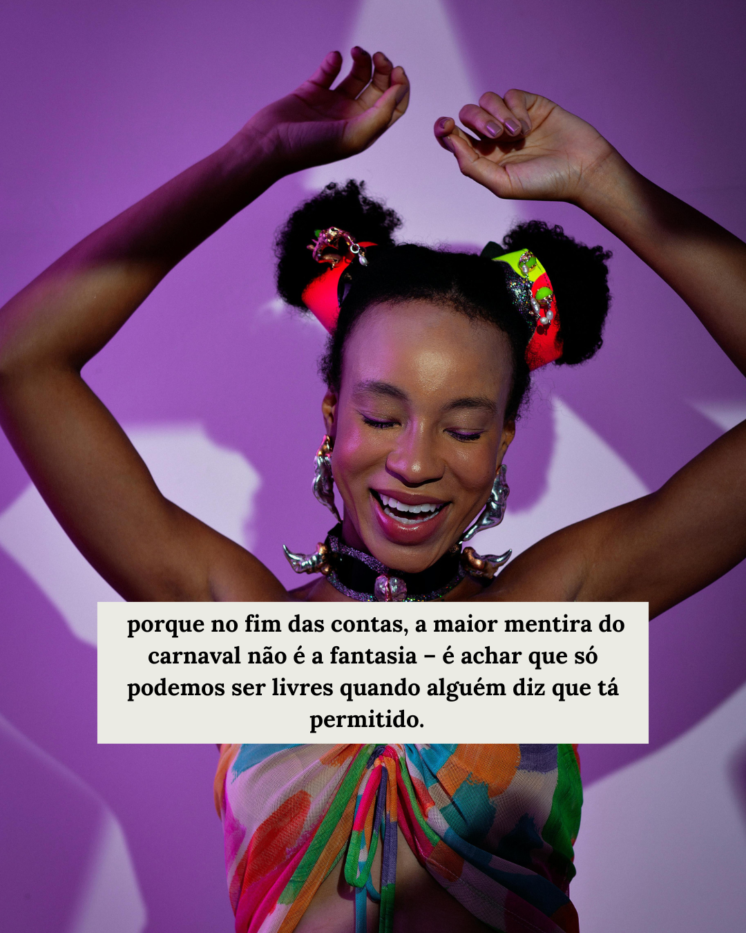 porque o carnaval é fuga, mas também é revelação. a gente passa dias vivendo sem freio, sem regras, sem medo de errar. e aí, de repente, precisa voltar a encaixar no formato esperado. só que depois de tanta cor, de tanta liberdade, a rotina parece ainda mais cinza. por que é tão difícil ser um pouco mais livre o resto do ano? por que a gente só se autoriza a viver de verdade quando tem feriado pra justificar?