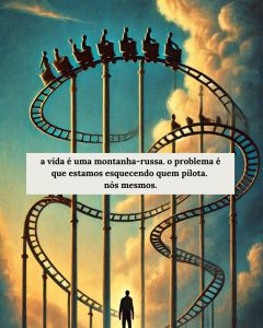 a vida é feita de altos e baixos. uma hora, você está lá em cima, no topo da montanha-russa. subiu devagar, foi puxado, e quando chega no topo, tudo parece estável. então vem a descida: rápida, violenta. você cai sem nem saber onde vai parar. tem certeza de que vai abrir um buraco no chão, e às vezes abre mesmo. desce até achar que não tem mais como, e de repente, vem a curva para a esquerda, depois para a direita, sobe um pouco, vai reto, desce de novo e, olha só, quando percebe, está subindo outra vez. a vida é uma montanha-russa. o problema é que estamos esquecendo quem pilota. nós mesmos. e fica difícil saber até onde estamos nesse trajeto por escolha própria ou porque fomos violentamente empurrados. não importa se foi a sociedade ou alguém. estamos cada vez mais perdidos dentro de nós mesmos, tão ocupados em “estar” tantas coisas que esquecemos do que é ser.
