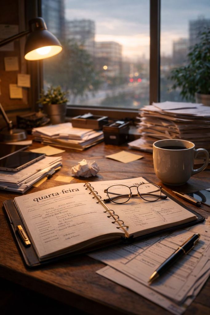 e aí a gente segue. trabalha, resolve, responde, cumpre. esperando que a vida aconteça em dois dias específicos da semana. só que ela não espera. ela acontece no meio também. acontece na quarta. no dia comum. no café morno. na tarefa chata. na conversa rápida. no cansaço que não vira descanso.