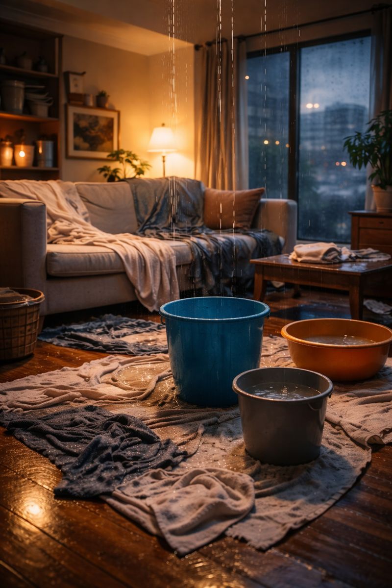 quando eu cheguei do trabalho era uma profusão de baldes, panos, toalhas e móveis fora do lugar. coisas que poderiam muito bem ter arruinado a pouca saúde mental que ainda me resta. claro que a gente se chateia com esse tipo de situação. ninguém fica plenamente zen vendo a própria casa virar um improviso hidráulico. mas havia como consertar o problema? naquele momento? não. o caos vinha do telhado e eu não sou o homem-aranha.