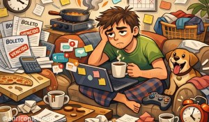 às vezes eu penso que a vida poderia vir com um manual. ou pelo menos com um botão “reiniciar dia”, igual videogame. mas não: ela prefere vir com boletos, imprevistos e aquela pessoa que te manda mensagem só quando precisa — sempre no pior momento possível, claro.