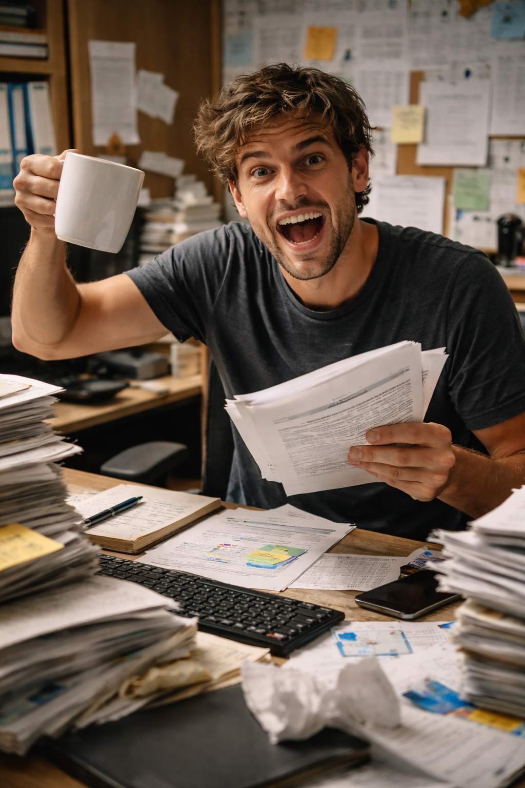 no fim do dia, olhei tudo organizado e pensei: é isso. era só isso. não teve epifania, nem mudança de vida. só aquele alívio silencioso de quem sabe que amanhã vai dar problema de novo, mas hoje… hoje não.