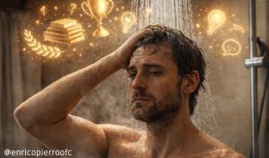 e não é só isso: no banho eu ganho prêmios. literalmente. não na vida real, claro, mas nas minhas fantasias extremamente bem produzidas. ali eu já recebi troféus, dei entrevistas, expliquei processos criativos profundíssimos, agradeci à academia e saí do box com a sensação de que sou uma pessoa brilhante e incompreendida. depois eu me seco, visto uma camiseta qualquer e lembro que tudo isso aconteceu enquanto eu tentava tirar o cheiro de cansaço do corpo.