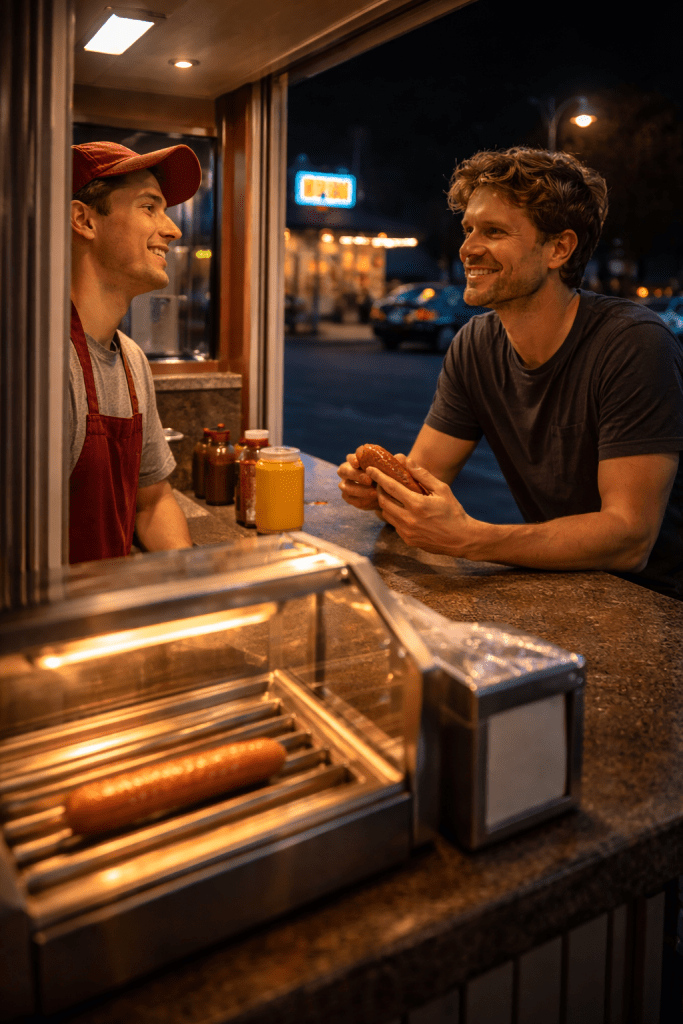 foi então que o moço que trabalhava lá me contou, com um certo entusiasmo misturado com surpresa, que fazia dois anos que ninguém pedia aquela salsicha no turno dele. dois anos. aquela salsicha estava praticamente aposentada emocionalmente, vivendo ali apenas como um símbolo decorativo da esperança de que algum ser humano eventualmente voltaria a acreditar nela. (claro que não era AQUELA salsicha, mas deu pra entender, né?)