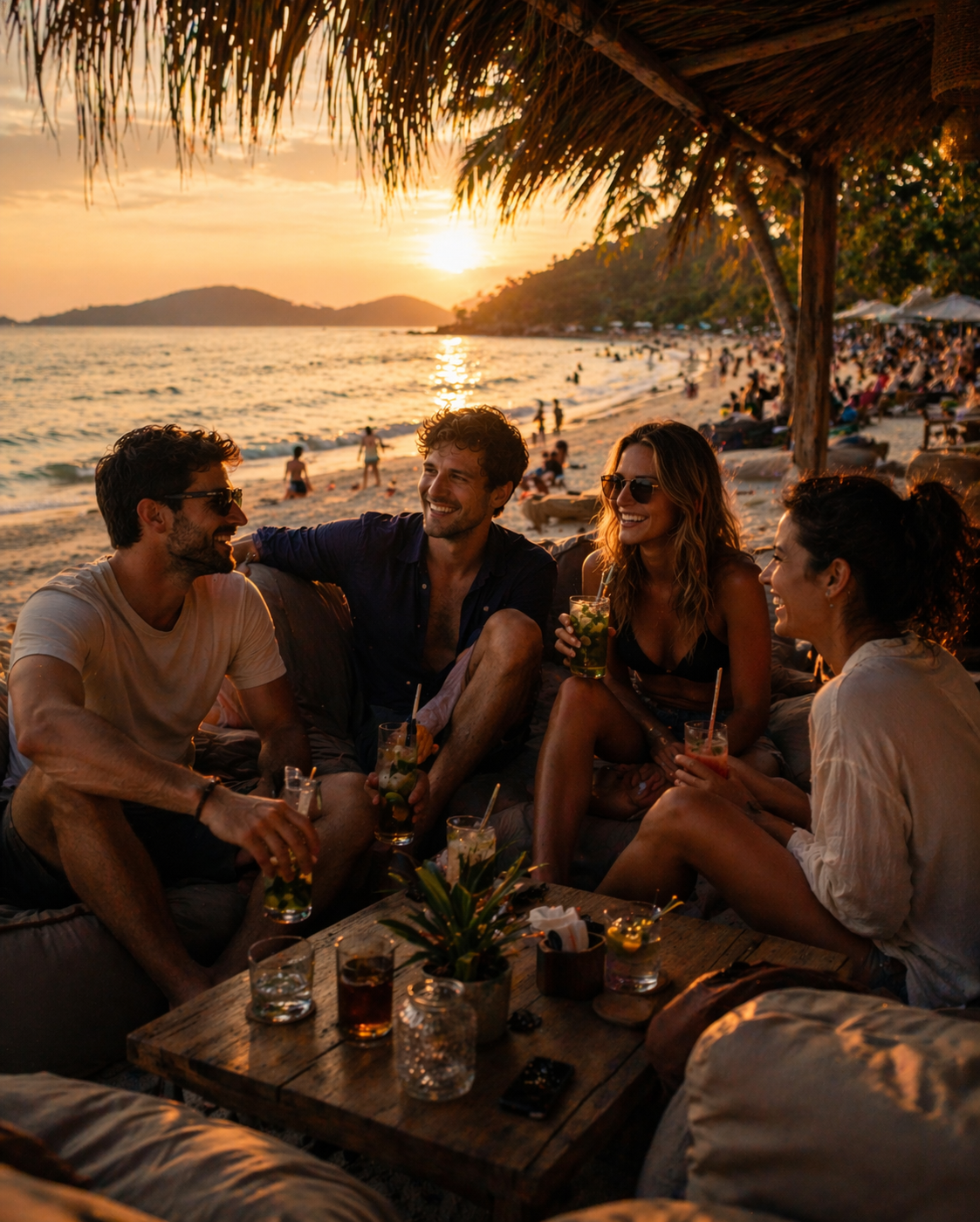 tentamos ir pra um lado da ilha, mas estava cheio. gente demais, movimento demais, barulho demais. não combinava com o que a gente estava vivendo. então mudamos o plano sem muito drama e fomos pro outro lado. eu, o john e nossos amigos. e, mesmo sendo um lugar que eu já conhecia, parecia diferente. ou talvez fosse eu que estivesse diferente. porque quando a gente desacelera por dentro, até o que já é familiar ganha outro tipo de beleza.