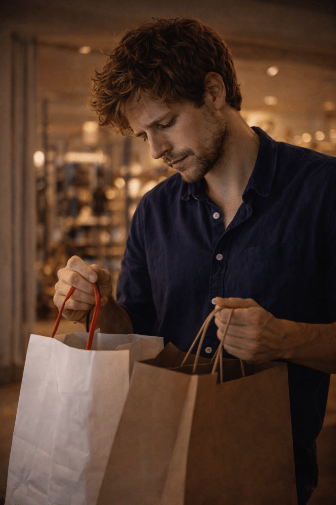 porque hoje eu comprei. e nem foi online, não foi aquele clique meio automático que você faz sem perceber. foi físico. eu estava ali, andando, escolhendo, pegando, passando no caixa. presente de verdade. e, em algum momento, me veio essa pergunta: será que eu estou fugindo de alguma coisa?