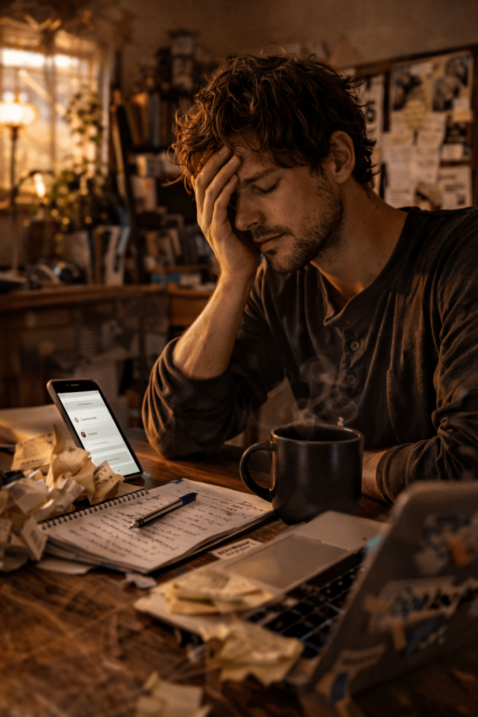 acordei com aquele sono que não é cansaço. é diferente. é uma letargia que gruda, que pesa, que faz você olhar pra lista de coisas pra resolver e pensar: tá, mas e se não? e aí você se levanta do mesmo jeito porque não tem essa opção, mas a pergunta ficou no ar.